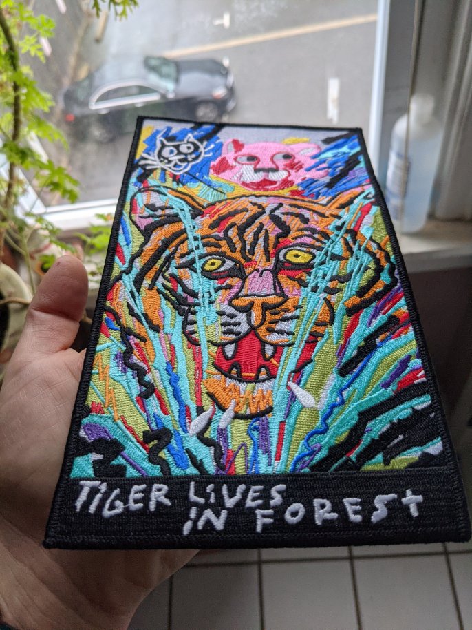 huge embroidered tiger patch 5x9 inches you'll have to sew it, it isn't iron-on